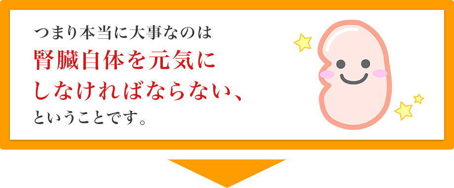 病院に通い続けながらも、こんな不安を抱えておられる方は多いでしょう。 慢性腎臓病(CKD)とは、慢性的な腎機能の低下によってあらわれるさまざまな症状を指す言葉です。つまり、症状を緩和する治療をいくらしたとしても、腎臓自体を元気にしなければ意味がないのです。