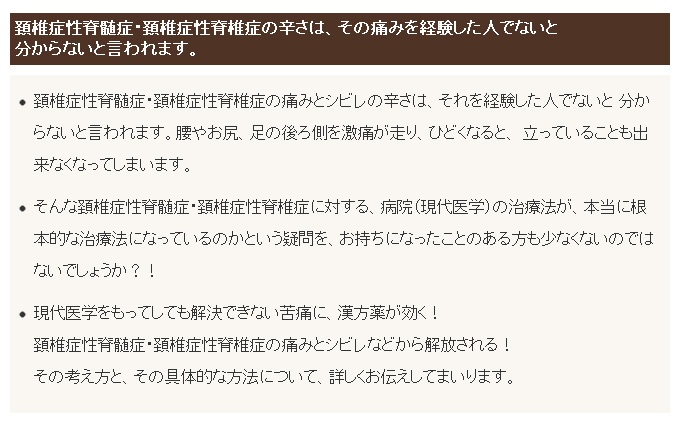 お医者さんに診てもらったら「脊髄症ですよ」と診断されるというようなケースです。 -