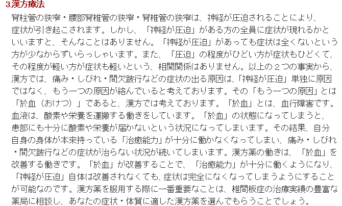 西洋医学的な治療法(保存療法・手術療法)で思うような効果が現れなかった場合や、手術に対して「ためらい」を感じておられる方にはお勧めの治療法です。症状が完全になくなってしまったという症例も多く存在します(詳しくは後述)。